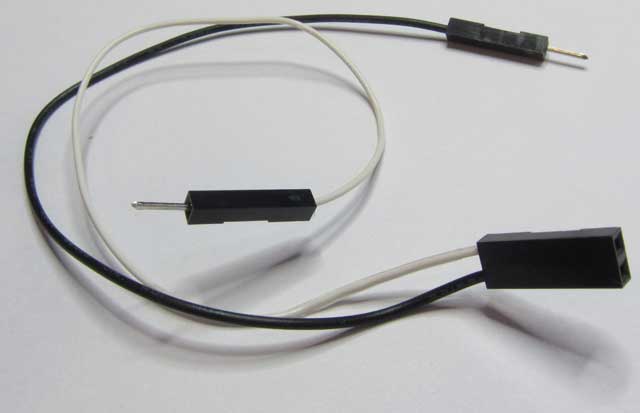 Jumper wires with 0.1 dual female connector to single male connectors.