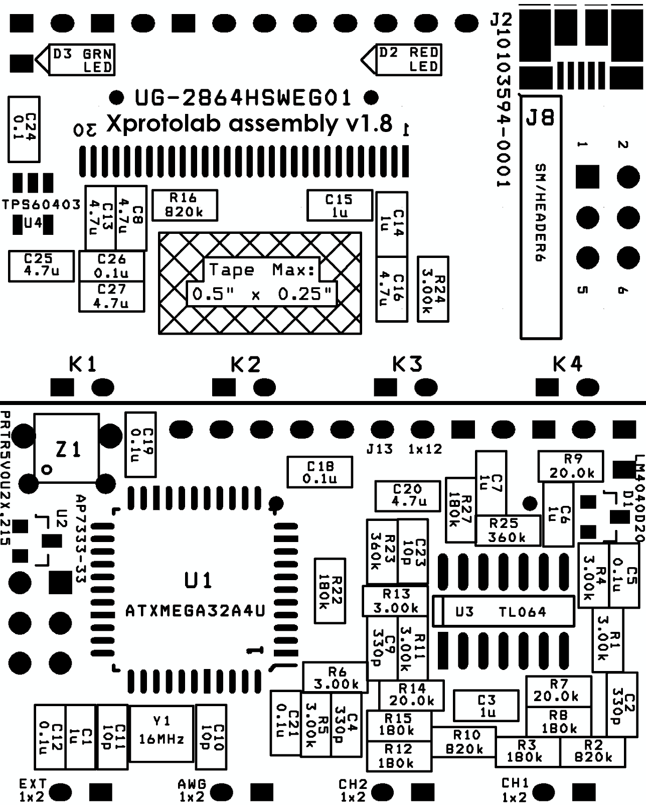 Before removing the peeling from the tape and folding the OLED, power up the board to verify that it is working. Check that the OLED is working and that the -5V and 3.3V are present. |